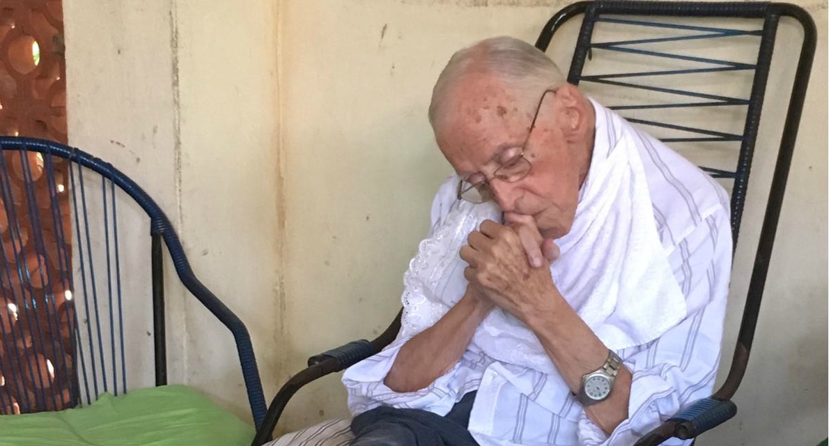Por fin llegó el momento de ir a su casa, recorrer cada rincón y, finalmente, entrar en contacto con él. Cuando se aproximó, le estaban dando de comer, “se veía su fragilidad”, dice. “Casi no escucha, habla y ve poco. Apoyé mi mano sobre la suya y él, con mucho esfuerzo, me la apretó”.
