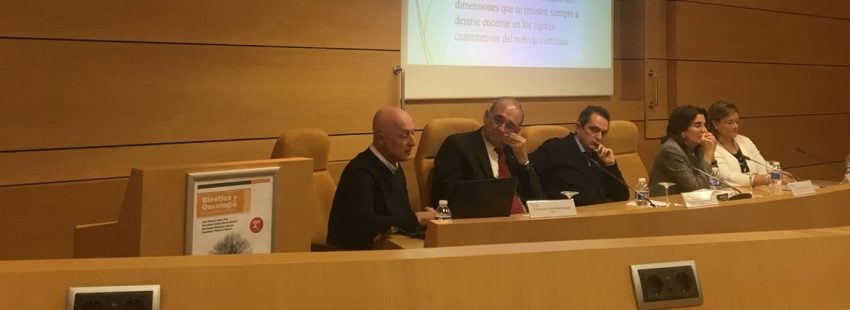 La doctora García se hizo eco de una reciente encuesta sobre la formación bioética de los oncólogos españoles para mostrar el largo camino que aún queda por recorrer en este aspecto. Así, la encuesta fue contestada por 177 especialistas –”el 10% de los miembros de la Sociedad Española de Oncología”–, donde se evidenciaba la falta de formación de la mayoría de ellos, aunque con el esperanzador dato de que 160 del total de los encuestados mostró su interés en mejorar su formación en ética y bioética.