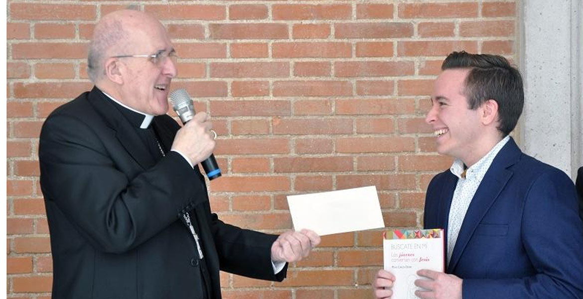 El cardenal Carlos Osoro entregó ayer, 22 de febrero, a Ángel Álvarez Miguel, un joven de Valladolid, el premio del concurso ‘Búscate en mí’. Un premio que surge a raíz de la publicación del libro ‘Búscate en mí. Los jóvenes conversan con Jesús’, publicado por PPC Editorial. Dicha obra, escrita por el propio cardenal, deja al final de cada capítulo un espacio llamado ‘Ahora te toca a ti’, donde se invita a los jóvenes –el público objetivo– a realizar distintas actividades, como comentar lo leído o inventar un relato relacionado.