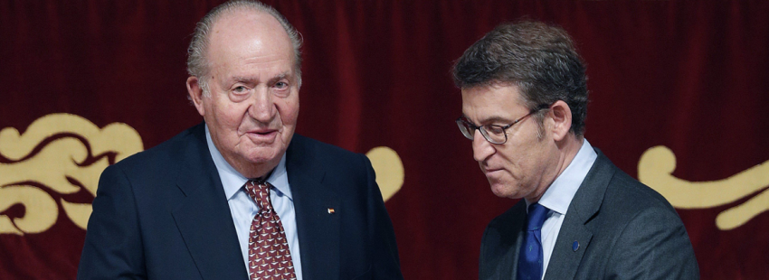 El Rey emérito Juan Carlos ha recibido hoy, de manos del presidente de la Xunta de Galicia, Alberto Núñez Feijó, la credencial de embajador de honor del Camino de Santiago. En un acto realizado en el Parador de los Reyes Católicos, en la Plaza del Obradoiro de la capital compostelana.