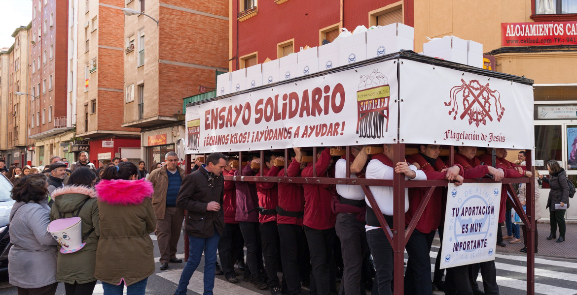 Un ejemplo de este comportamiento lo tenemos en La Rioja, donde mañana 27 de marzo hará su estación de penitencia la Cofradía de la Flagelación, después de haber llevado a cabo una recogida de alimentos el pasado domingo 18 de marzo con una idea muy original, bajo el lema ‘Échanos kilos’.