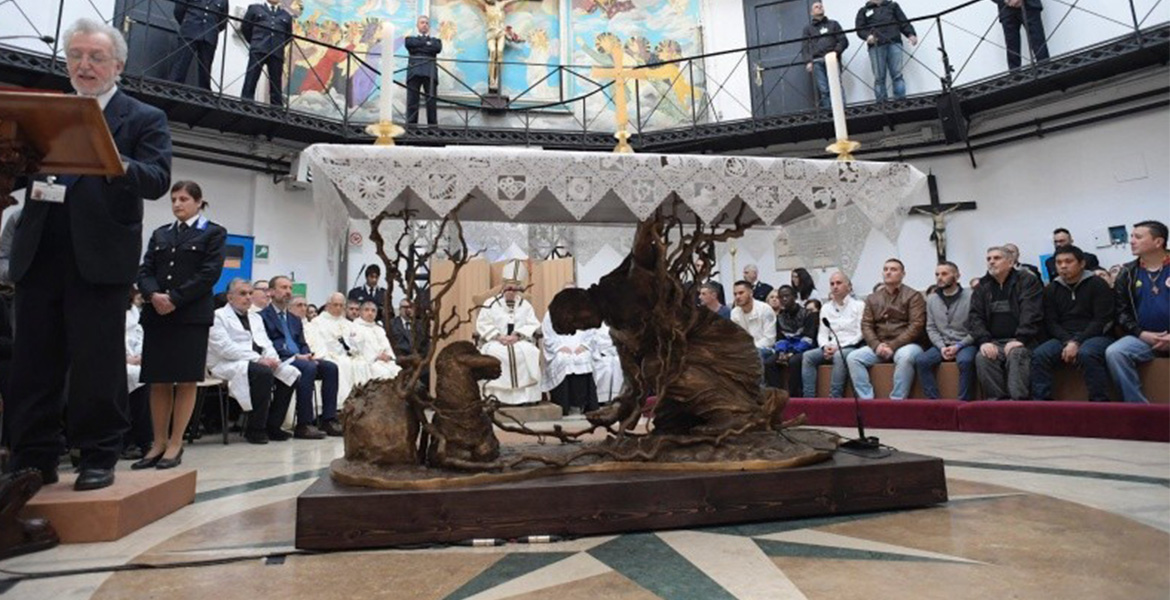 A continuación ha presidido la eucaristía a la que han asistido más de 600 personas entre reclusos y funcionarios de la prisión. Y Francisco ha dejado como regalo el propio altar empleado en esta ocasión. Una obra en bronce del escultor Fiorenzo Bacci de Porcia, un regalo que el propio Francisco recibió durante la Audiencia general del 12 de noviembre de 2016.