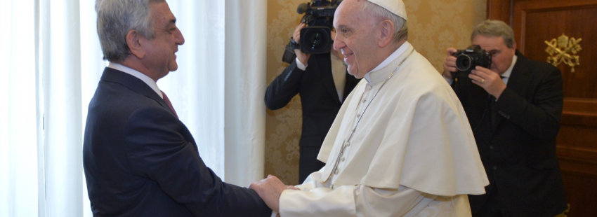 En una audiencia privada en el Vaticano, en la mañana de hoy jueves, 5 de abril, se han reunido el presidente de la República de Armenia, Serzh Sargsyan y Francisco. Además de la inauguración de una estatua, en los jardines vaticanos, de San Gregorio Narek, doctor de la Iglesia, los participantes han podido dialogar sobre el contexto político regional, marcado por los conflictos en los que están envueltos sus vecinos Turquía, Irak y la cercana Siria, coincidiendo ambos en el deseo de solución de estas situaciones.
