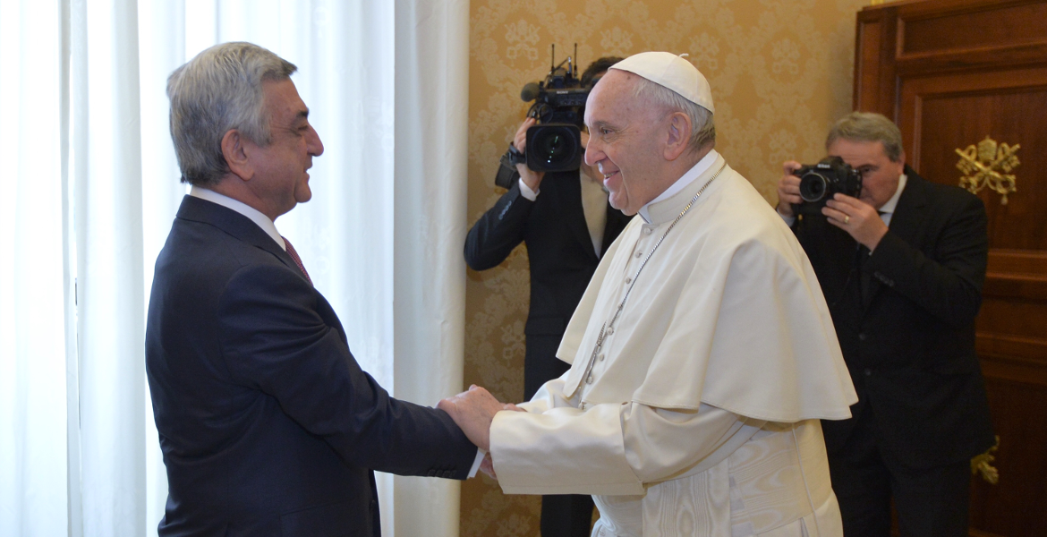 En una audiencia privada en el Vaticano, en la mañana de hoy jueves, 5 de abril, se han reunido el presidente de la República de Armenia, Serzh Sargsyan y Francisco. Además de la inauguración de una estatua, en los jardines vaticanos, de San Gregorio Narek, doctor de la Iglesia, los participantes han podido dialogar sobre el contexto político regional, marcado por los conflictos en los que están envueltos sus vecinos Turquía, Irak y la cercana Siria, coincidiendo ambos en el deseo de solución de estas situaciones.