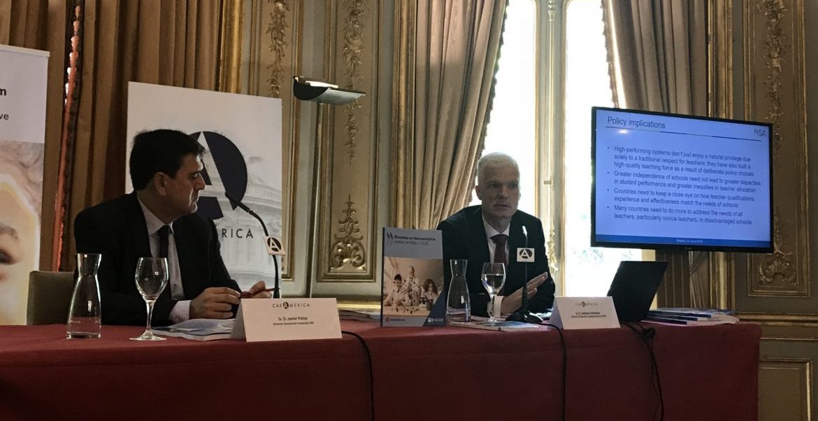 Sobre el perfil del profesorado, el director de Educación y Competencias de la OCDE señaló que “en España ni son los licenciados más preparados ni los peor preparados, están dentro de la media”, de la misma manera que señaló que “dar un gran sueldo no es determinante para garantizar que tenemos a los mejores educando a nuestros hijos. Por eso, las políticas públicas pueden tener una gran incidencia, si se orientan a ofrecer oportunidades de crecimiento profesional para los docentes”.