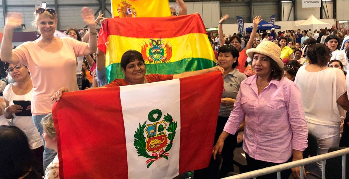 Había que venir al Palaexpo de Ginebra para encontrar a la multitud que esperaba al Papa desde primeras horas de la mañana. Esta gigantesca estructura –más de cien mil metros cuadrados– es el escenario de numerosas manifestaciones fierísticas (como el mundialmente famoso Salón del Automóvil) o culturales. Hoy le ha servido a Francisco para celebrar una Eucaristía que las fuentes eclesiales y civiles han cifrado con una presencia de 40.000 fieles. A simple ojo y oído muchos de ellos –¿la mayoría?– eran emigrantes instalados en Suiza desde hace años: portugueses, filipinos, latinoamericanos y naturalmente españoles, muchos menos que hace veinte o treinta años pero todavía numerosos.