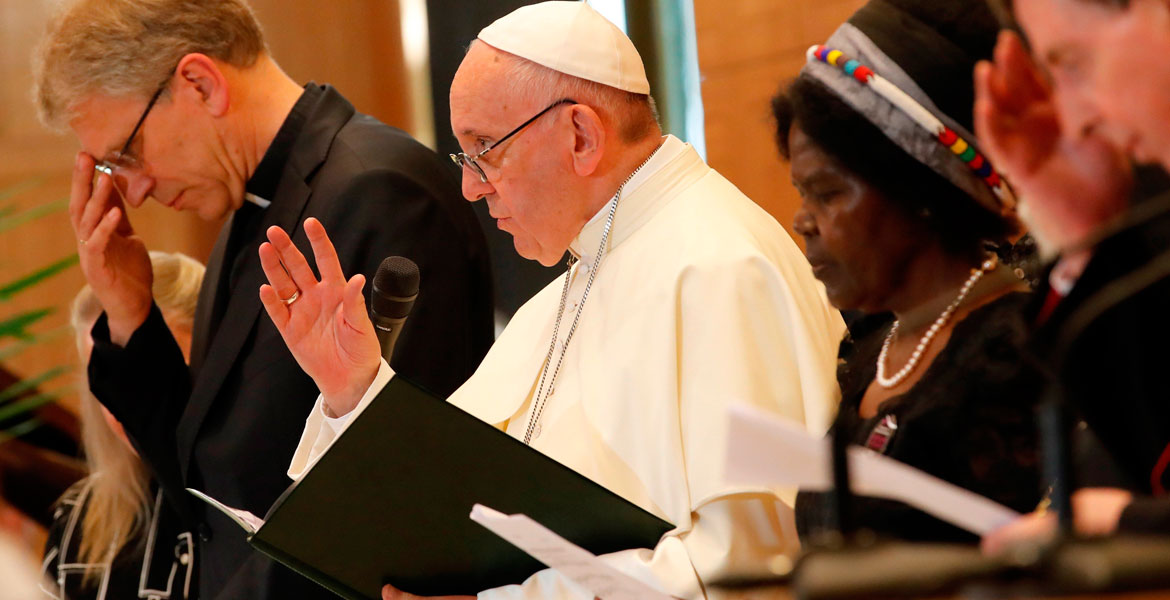 Francisco ha continuado con el segundo verbo: rezar, porque “también en la oración, como en el camino, no podemos avanzar solos, porque la gracia de Dios, más que hacerse a medida individual, se difunde armoniosamente entre los creyentes que se aman. Cuando decimos ‘Padre nuestro’ resuena dentro de nosotros nuestra filiación, pero también nuestro ser hermanos”. “La oración es el oxígeno del ecumenismo –ha precisado–. Sin oración la comunión se queda sin oxígeno y no avanza, porque impedimos al viento del Espíritu empujarla hacia adelante. Preguntémonos: ¿Cuánto rezamos los unos por los otros? El Señor ha rezado para que fuésemos una sola cosa, ¿lo imitamos en esto?”.