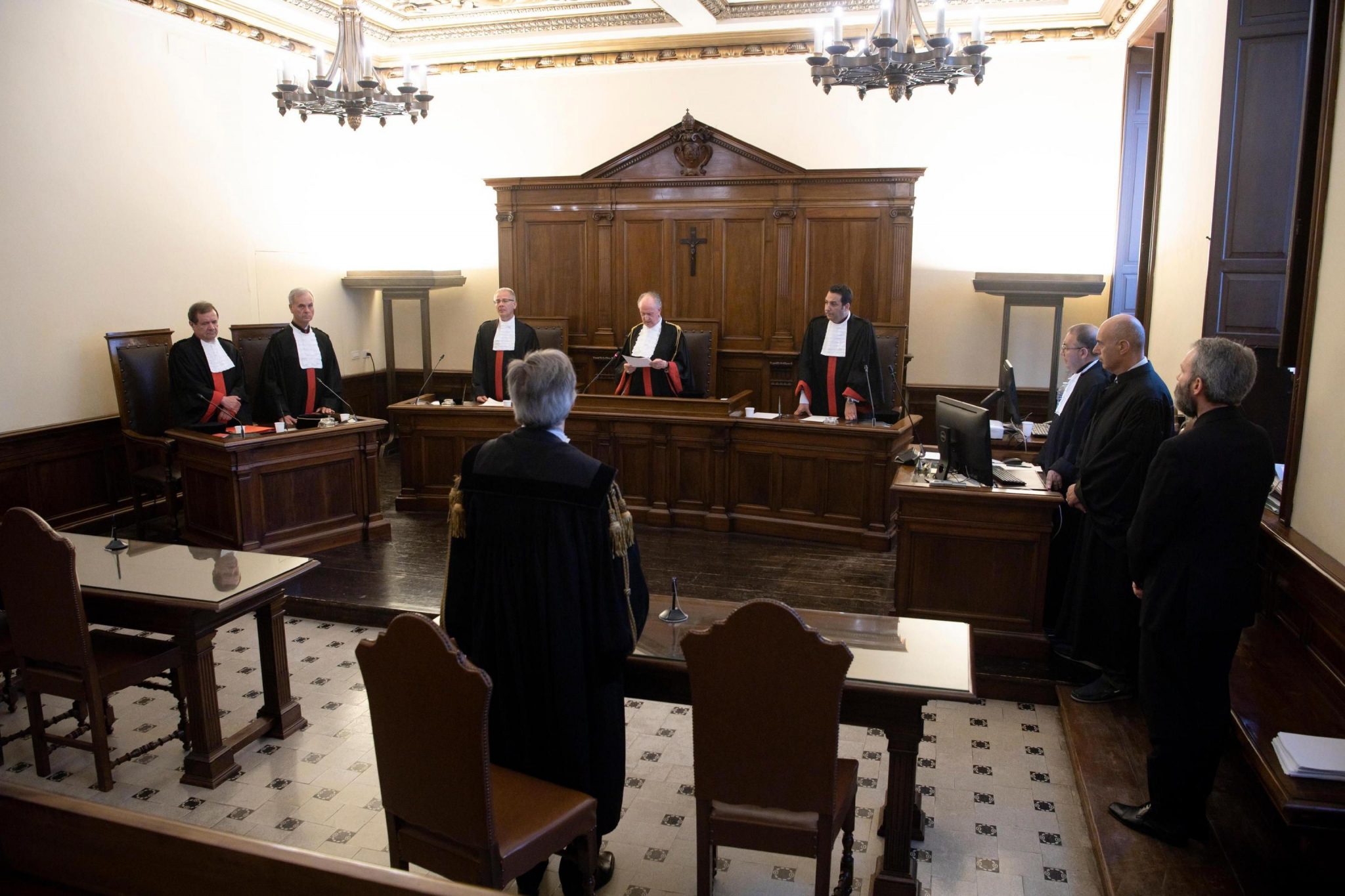 VTC02. Vatican City (Vatican City State (holy See)), 23/06/2018.- A handout photo made available by the Vatican Media shows a general interior view during the trial inside the Vatican Court that condemned the former Vatican diplomat, Msgr. Carlo Alberto Capella (R), to five years imprisonment and five thousand euros fine, for possession, transfer and transmission of child pornography material, Vatican City, 23 June 2018. Capella, a former diplomat for the Holy See, admitted to charges of the possession and distribution of child pornography while working in the US. (Santa Sede, Estados Unidos) EFE/EPA/VATICAN MEDIA HANDOUT HANDOUT EDITORIAL USE ONLY/NO SALES
