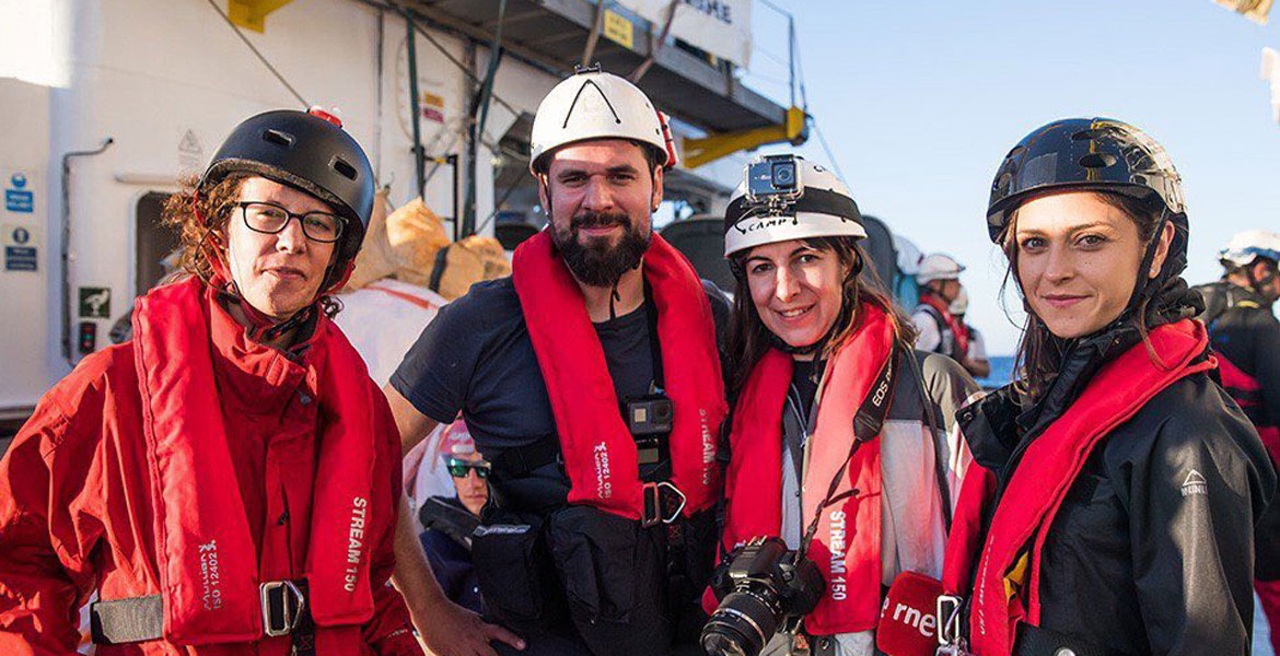 A lo largo de una semana marcada por un alud de emociones encontradas, Alonso, que ha acompañado el barco junto a un pequeño grupo de compañeros de otros medios –en la imagen que ilustra esta información, del perfil de Twitter de Óscar Corral (El País), ella es la segunda por la derecha–, reivindica que algo debe cambiar a partir de ahora: “El Aquarius se ha convertido en un símbolo, pero debemos tener claro que no estamos ante algo puntual… Van a seguir huyendo muchos inmigrantes de Libia, Marruecos o Nigeria, y vamos a seguir comprobando que el Sur, con Grecia, Italia y España a la cabeza, no puede estar solo en esto. Se necesitan soluciones amplias, globales, a nivel del conjunto de la Unión Europea”.