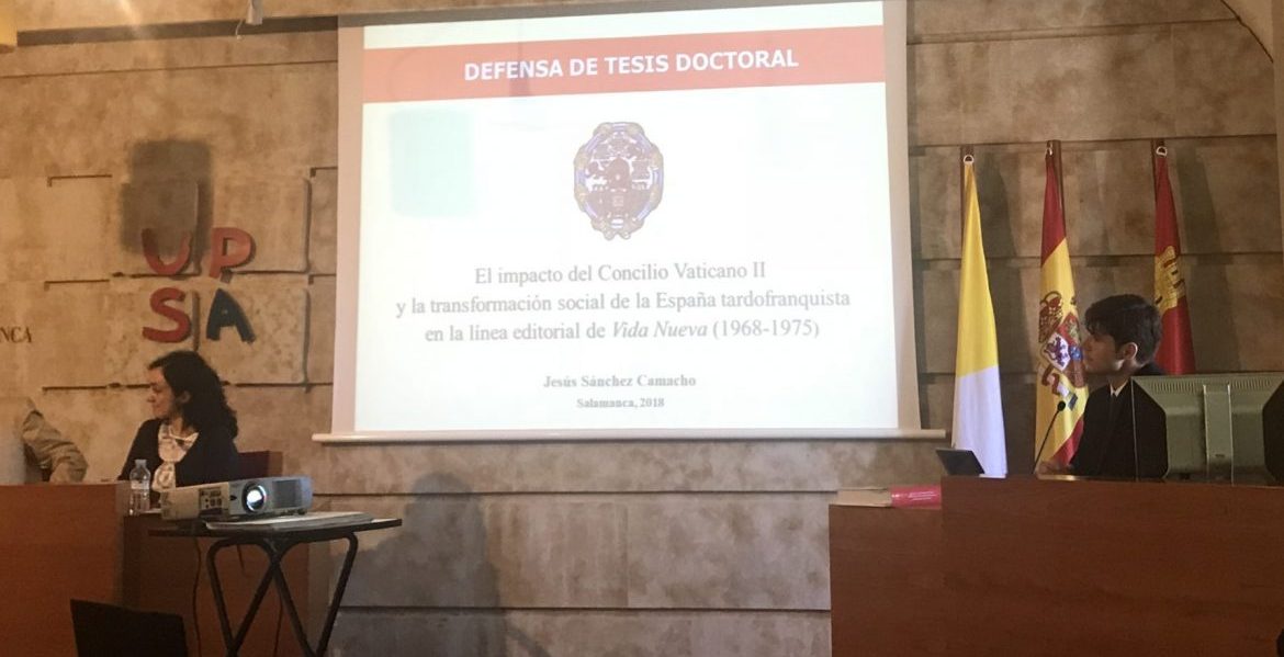 Para Jesús Sánchez Camacho, bucear en la historia del ser y hacer de Vida Nueva permite constatar “la multiforme transformación del catolicismo que estaba afrontando España” en el camino previo a la Transición Democrática. Así lo expuso esta mañana durante la defensa de su tesis doctoral ‘El impacto del Concilio Vaticano II y la transformación social de la España tardofranquista en la línea editorial de Vida Nueva (1968-1975)’. El trabajo fue calificado por el tribunal con un sobresaliente.