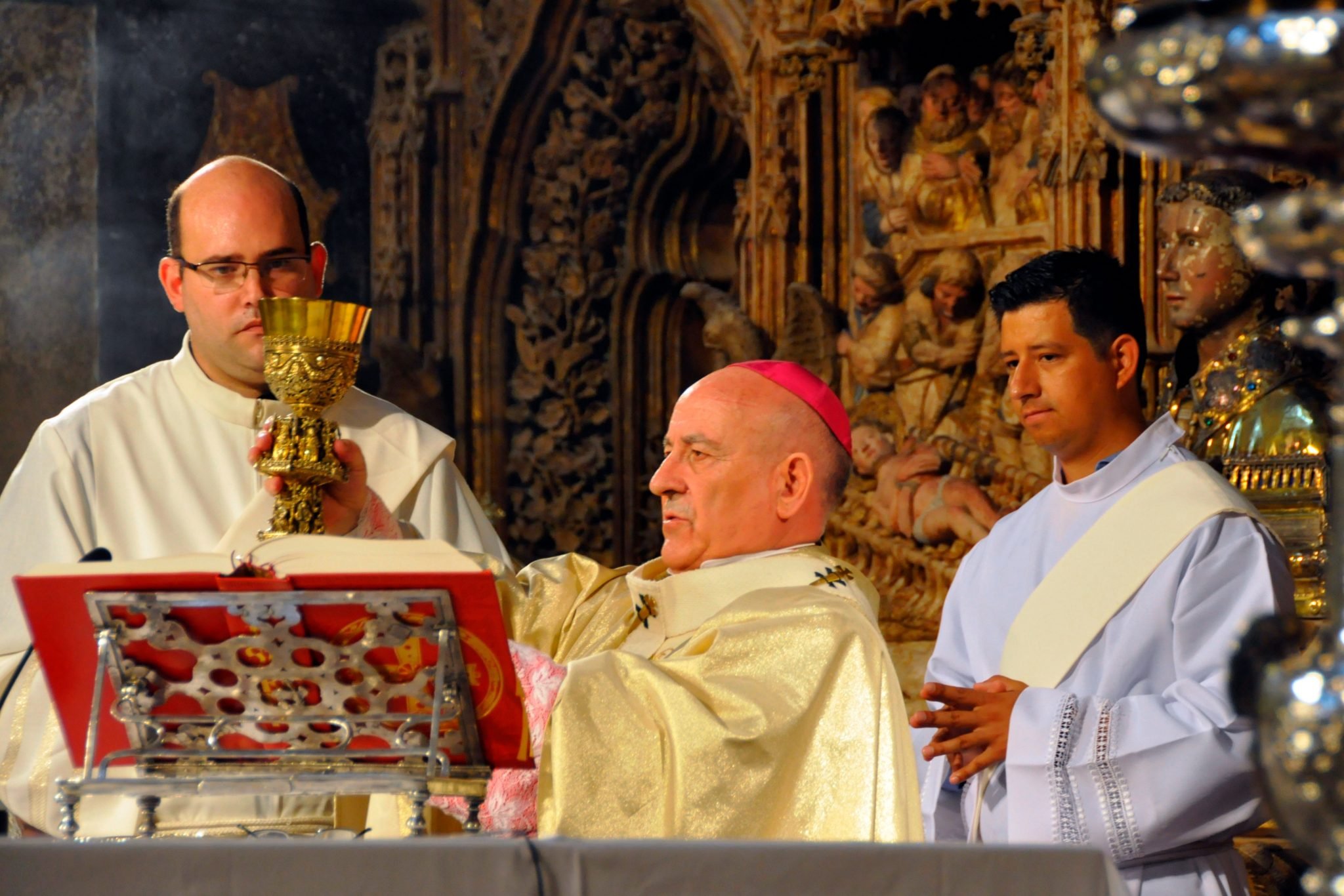 La eucaristía ha estado presidida por el arzobispo de Zaragoza, Vicente Jiménez Zamora, acompañado por el arzobispo Moliner (nuncio emérito en Albania), los obispos de las diócesis de Aragón y otros dos obispos eméritos residentes en Zaragoza, Moliné (Chiclayo, Perú) y Redrado (Pontificio Consejo de la Salud, Roma). También han estado presentes miembros de la Curia y numerosas religiosas y fieles.