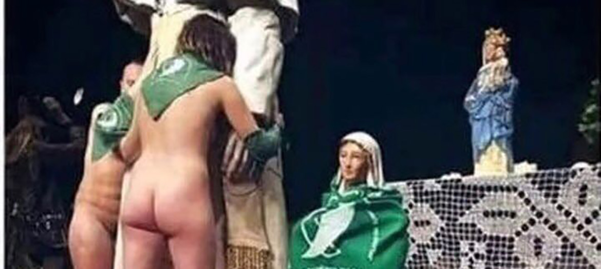 Este último viernes -20 de julio-, sorprendieron a los espectadores cuando subieron al escenario dos jóvenes desnudas y colocaron pañuelos verdes, en favor de la legalización del aborto, a las imágenes de la Virgen y del papa Francisco.