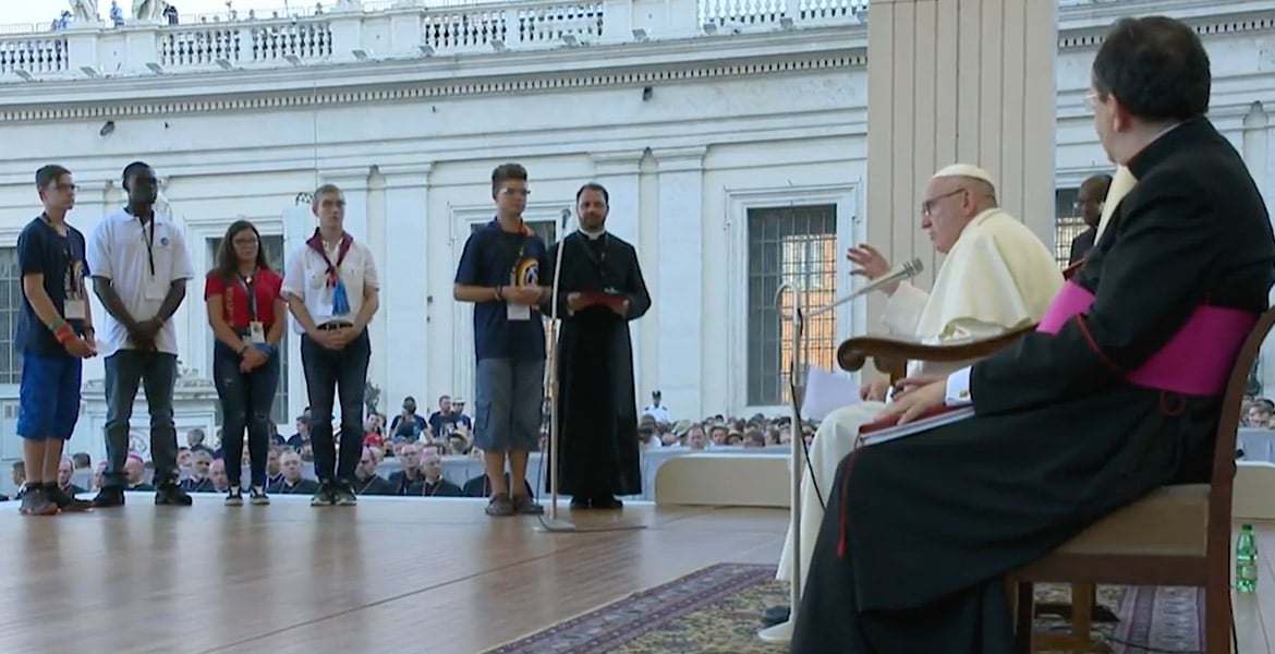 Dialogando con jóvenes de los diferentes grupos lingüísticos, el Papa animó a los monaguillos a “profundizar más en la vida de Jesús, a conocerlo de verdad y a seguir el programa que Él nos propone para caminar hacia la santidad”. Un camino que “no es fácil” dijo, sino que “es un esfuerzo” y que no es “para los vagos”, bromeó.
