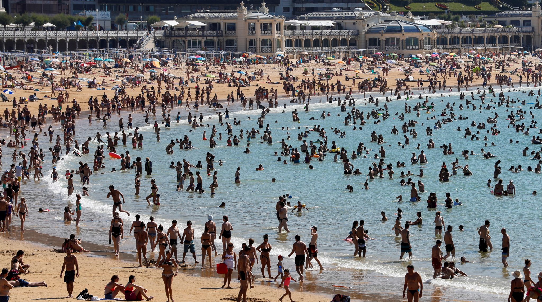 GRAF1688. SAN SEBASTIÁN, 03/08/2018.- Donostiarras y visitantes se refrescan en la playa de La Concha de San Sebastián, donde hoy de nuevo se han superado los 30ºC. Según informa la delegación territorial de Aemet, para mañana se esperan cielos despejados en el País Vasco, con intervalos de nubes altas, temperaturas sin cambios y vientos flojos del oeste en el litoral y del norte en el interior. EFE/Javier Etxezarreta