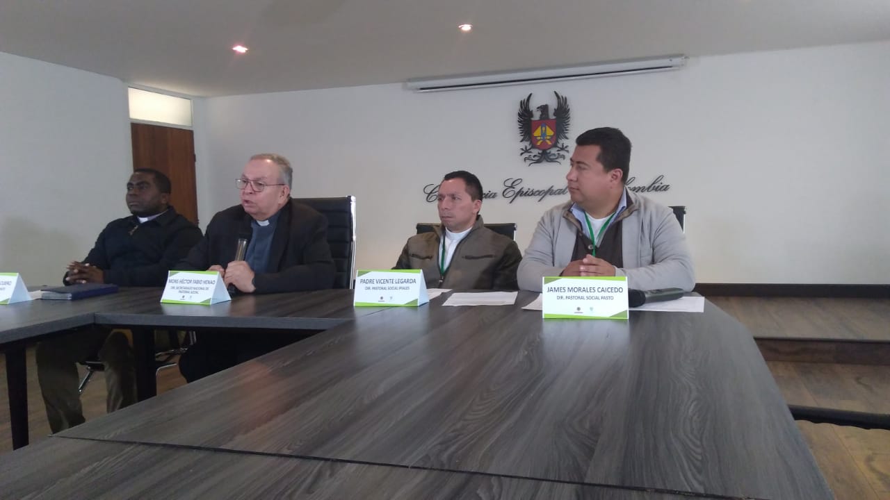 En rueda de prensa convocada desde la CEC, los directores de las pastorales sociales Alfredo Cuero (Tumaco), Vicente Legarda (Ipiales) y James Caicedo (Pasto), acompañados por Héctor Fabio Henao, director nacional de la pastoral social / Cáritas Colombiana (en la foto), hicieron lectura de un comunicado en el que detallaron el trabajo eclesial, enfocado en tres aspectos clave: líderes sociales, crisis migratoria de venezolanos, mesas de diálogo gobierno ELN e implementación de los acuerdos de paz.