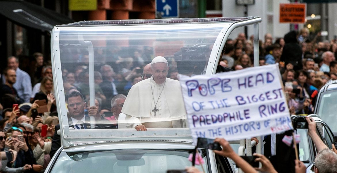 El Papa, en Dublín, ante un cartel contra los abusos en la Iglesia