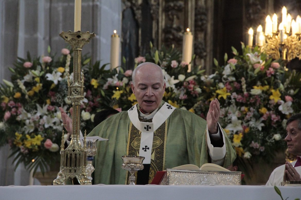 Este domingo –2 de septiembre–, el cardenal Carlos Aguiar Retes recibió de manos del nuncio apostólico en México, Franco Coppola, el palio arzobispal que lo distingue oficialmente como primado de México. La imposición tuvo lugar en la Catedral Metropolitana, y la ocasión fue aprovechada por el arzobispo para expresarle al papa Francisco su solidaridad ante las acusaciones de encubrimiento de abuso sexual hechas recientemente en su contra por el ex nuncio apostólico en los Estados Unidos, el arzobispo Carlo Maria Viganò.