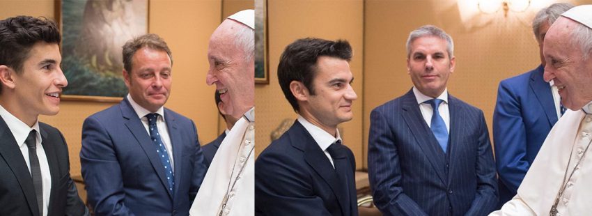Antes de la audiencia del miércoles 5 de septiembre, el papa Francisco recibió a algunos de las participantes del Gran Premio de San Marino y la Costa de Rímini de Motociclismo, entre ellos los españoles Marc Márquez o Dani Pedrosa. Ambos deportistas han manifestado su emoción en las redes sociales, a la vez que han compartido alguno de los momentos que han vivido dentro de los muros vaticanos. Los jóvenes corredores han podido ofrecer al pontífice sus cascos de competición.