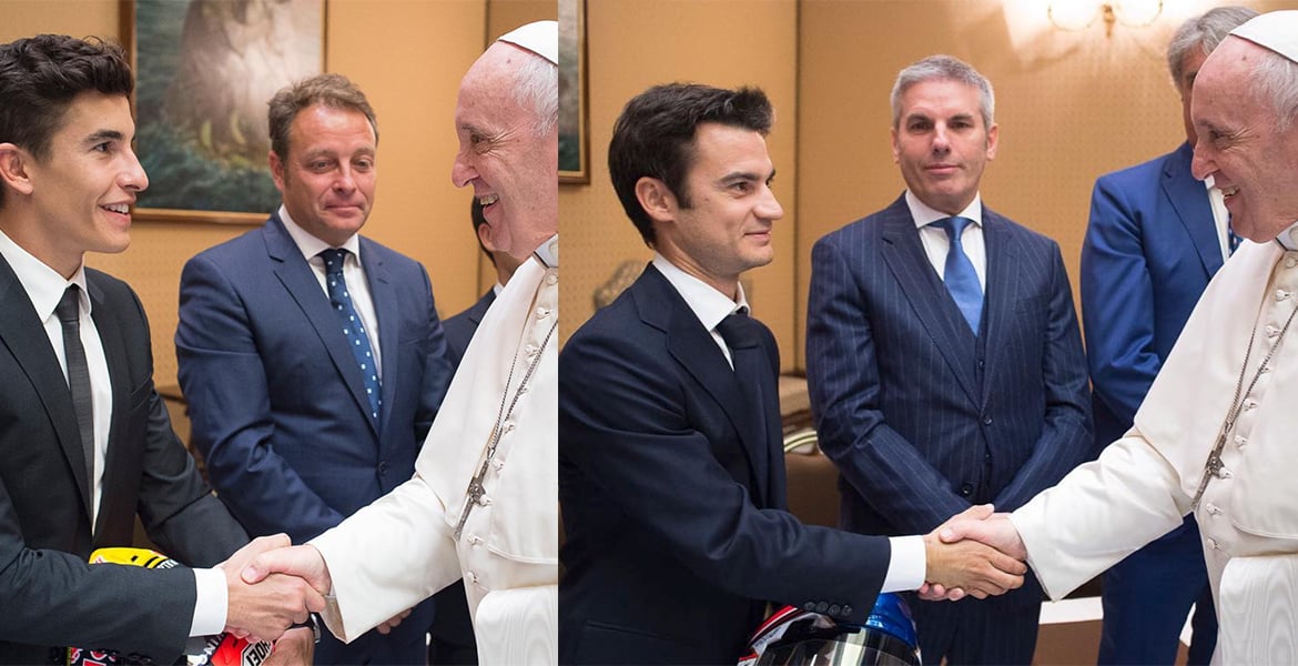 Antes de la audiencia del miércoles 5 de septiembre, el papa Francisco recibió a algunos de las participantes del Gran Premio de San Marino y la Costa de Rímini de Motociclismo, entre ellos los españoles Marc Márquez o Dani Pedrosa. Ambos deportistas han manifestado su emoción en las redes sociales, a la vez que han compartido alguno de los momentos que han vivido dentro de los muros vaticanos. Los jóvenes corredores han podido ofrecer al pontífice sus cascos de competición.