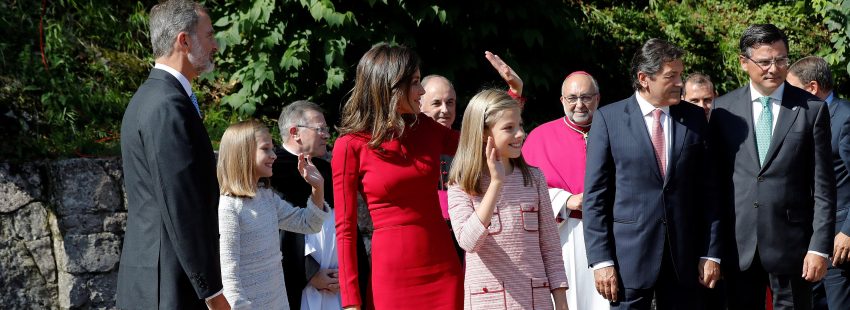Pasadas las 12 de la mañana de este sábado 8 de septiembre, con algo más de media hora de retraso sobre el horario previsto, los Reyes de España, don Felipe y doña Letizia, acompañados de sus hijas, la princesa Leonor y la infanta Sofía, llegaban al Real Sitio de Covadonga para participar en la clausura oficial del Año Jubilar Mariano. Un tiempo de celebración, inaugurado el 8 de septiembre de 2017, para conmemorar la coronación canónica de las imágenes de la Virgen de Covadonga y del Niño Jesús que porta en sus brazos.