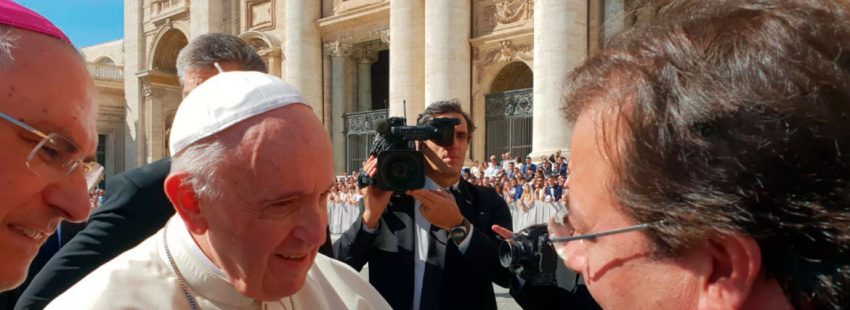Fernández Vara tras su encuentro con Francisco ha señalado que “es una persona absolutamente entrañable, se tenga creencia o no, es hoy en día un referente para mucha gente en el mundo. Se ha interesado mucho por Extremadura y me ha preguntado que qué tal nos iba”.