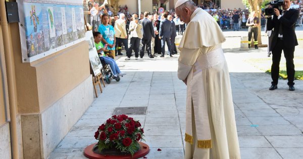 El Papa reza ante el lugar en el que fue asesinado don Pino Puglisi hace 25 años, durante su