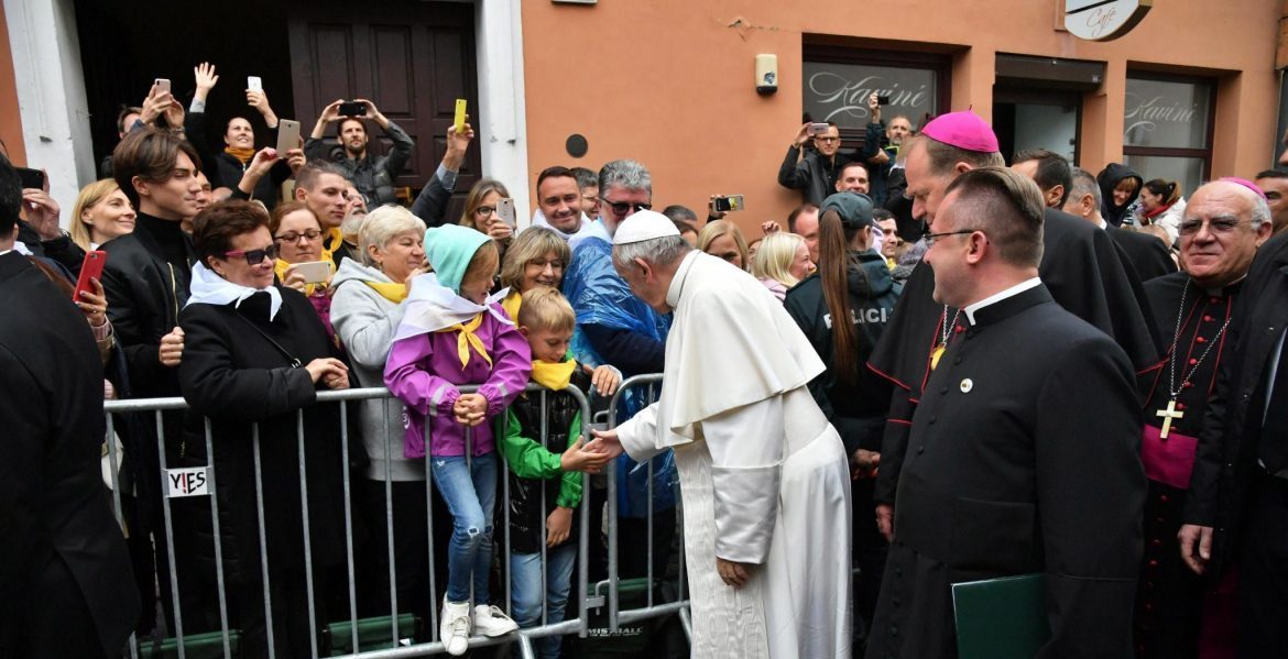 Francisco explicó que son muchos y de diverso origen y religión los que visitan cada día el santuario de la Madre de la Misericordia de Vilna y celebró la “fluidez” de las comunicaciones y la “libertad de circulación” que existen hoy entre mucho países. “Qué bueno sería que a esta facilidad para movernos de un lugar a otro se le sumara también la facilidad para establecer puntos de encuentro y solidaridad entre todos”, deseó a continuación, de modo que circularan también los “dones que gratuitamente hemos recibido”. Se conseguiría así “salir de nosotros mismos y darnos a los demás, acogiendo a su vez la presencia y la diversidad de los otros como un regalo y una riqueza en nuestras vidas”.
