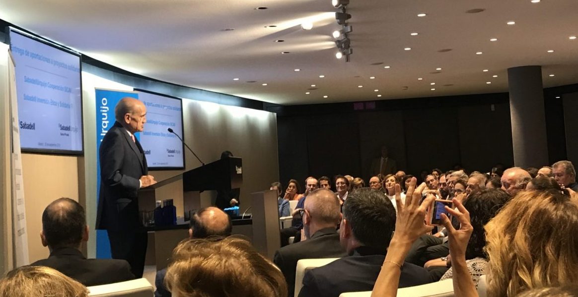 Aunque el acto iba a estar presidido en un principio por el cardenal arzobispo de Madrid, Carlos Osoro, se excusó a través de una carta en la que agradeció a Banco Sabadell los recursos destinados “por pensar los que más necesitan y por construir una banca ética, que mire por paliar cualquier tipo de exclusión y que muestre que el dinero es para servir y no para servirnos”.