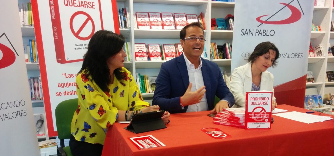 También en el ámbito laboral se está difundiendo “y aplicando” su libro, o en los colegios, donde algunos profesores han dedicado la clase del día a ‘Prohibido quejarse’. “Se trata de enseñar a los estudiantes a superar un problema, a hablar de él, a mirarse a los ojos en caso de conflicto para llegar al encuentro”. “Respetar al otro, respetar al más frágil, echar una mano a quien lo necesita. Esta es la filosofía de ‘Prohibido quejarse’”, insiste este experto en procesos formativos y mediador familiar.
