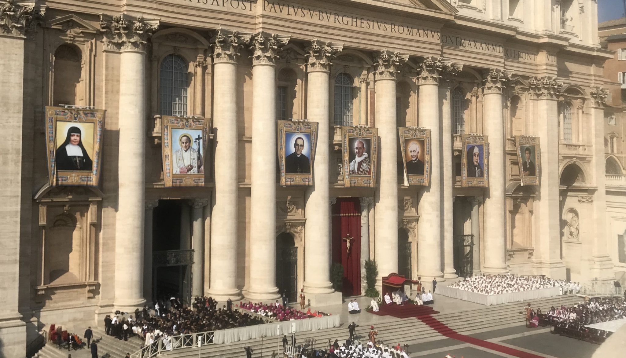 Francisco manifestó con palabras su plena identificación con los dos nuevos santos, pero también con gestos. No en vano, Jorge Mario Bergoglio celebró la misa con el círculo del que fuera arzobispo de San Salvador, así como la mitra y la cruz pastoral del Papa Montini.