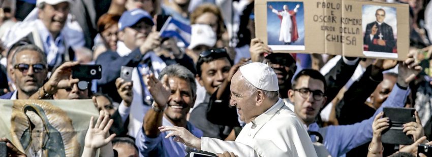 La ‘ottobrata’ romana tiene fama de ofrecer una metereología suave y una luminosidad especial que dora los ya hermosísimos monumentos de esta ciudad. El domingo 14 de octubre respondió con total fidelidad a esa reputación y fue una jornada climáticamente inmejorable. En consecuencia, la plaza de San Pedro se llenó desde primeras horas de la mañana con una multitud variopinta donde se hizo muy patente la presencia de muchos latinoamericanos, especialmente salvadoreños (unos 7.000), venidos a festejar al “santo de América”, monseñor Óscar Romero.