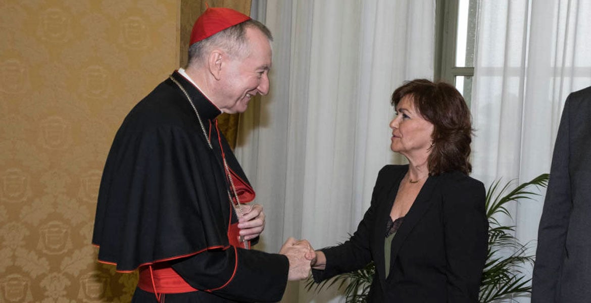 Pero, sin duda, el tema estrella de esta visita era Franco. Y también ha formado parte de la reunión. “El cardenal Parolin ha garantizado a la vicepresidenta del Gobierno que no va a oponerse a la exhumación de los restos de Francisco Franco del Valle de los Caídos”, explican en el mismo comunicado. Asimismo, añaden: “Respecto a la inhumación, ambos han coincidido en la necesidad de buscar una solución y seguir manteniendo el diálogo”. Y, en este sentido, el Gobierno español ha agradecido a la Santa Sede “la comunicación cordial y fluida que se está manteniendo con el cardenal arzobispo de Madrid, Carlos Osoro, y con el presidente de la Conferencia Episcopal, el cardenal Ricardo Blázquez”.
