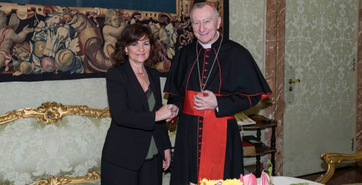 El Vaticano no suele pronunciarse sobre los encuentros con representantes de ningún Gobierno, siempre con la excepción de los presidentes. Sin embargo, este mismo mediodía –30 de octubre– ha sacado una nota aclaratoria sobre el encuentro entre el cardenal secretario de Estado, Pietro Parolin, y la vicepresidenta del Gobierno, Carmen Calvo. La número dos de Pedro Sánchez ha dicho esta mañana ante los medios de comunicación que la abordaron en el Congreso de los Diputados que había acordado con la Iglesia que los restos no fueran enterrados en la catedral de la Almudena”.