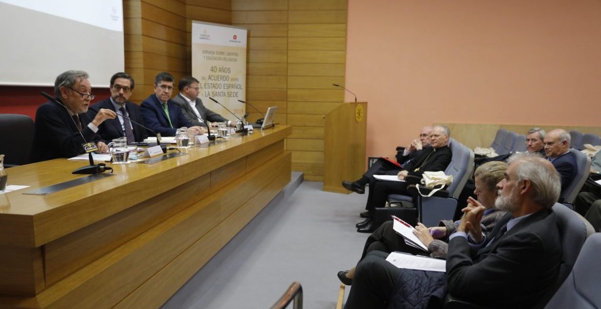“Los acuerdos Iglesia-Estado, que necesitan una adaptación, solo deberían ser revisados con el mismo espíritu de hace 40 años: cuando haya un clima de consenso que acepte la valoración y el reconocimiento del hecho religioso, como un elemento que contribuye a la sociedad, por lo tanto, digno de protección”. Esta es la recomendación que realizó Eugenio Nasarre, ex director general de Asuntos Religiosos, durante la mesa redonda celebrada en el marco de la jornada ‘Libertad religiosa y educación’ Convocada en Madrid por la Fundación SM y la Universidad Pontificia de Comillas.