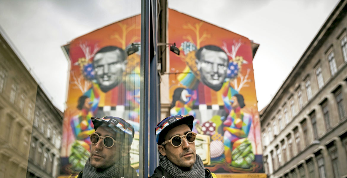 Dice Okuda San Miguel (Santander, 1980) que “Dios aparecerá cuando todos nos pongamos de acuerdo”. Lo afirma en correspondencia al título de su única exposición en 2018, que acaba de inaugurar en la sevillana galería Delimbo, que ha bautizado como ‘No Religions in the Sky’. Ese “no hay religiones en el cielo” es una indudable provocación propia –y recurrente– del arte contemporáneo cuando se incrusta con la fe. Porque Okuda –el artista urbano más solicitado y emergente de la renovadora escena artística española– demuestra que la religión, la católica en este caso, está viva y que bien vale una exposición.