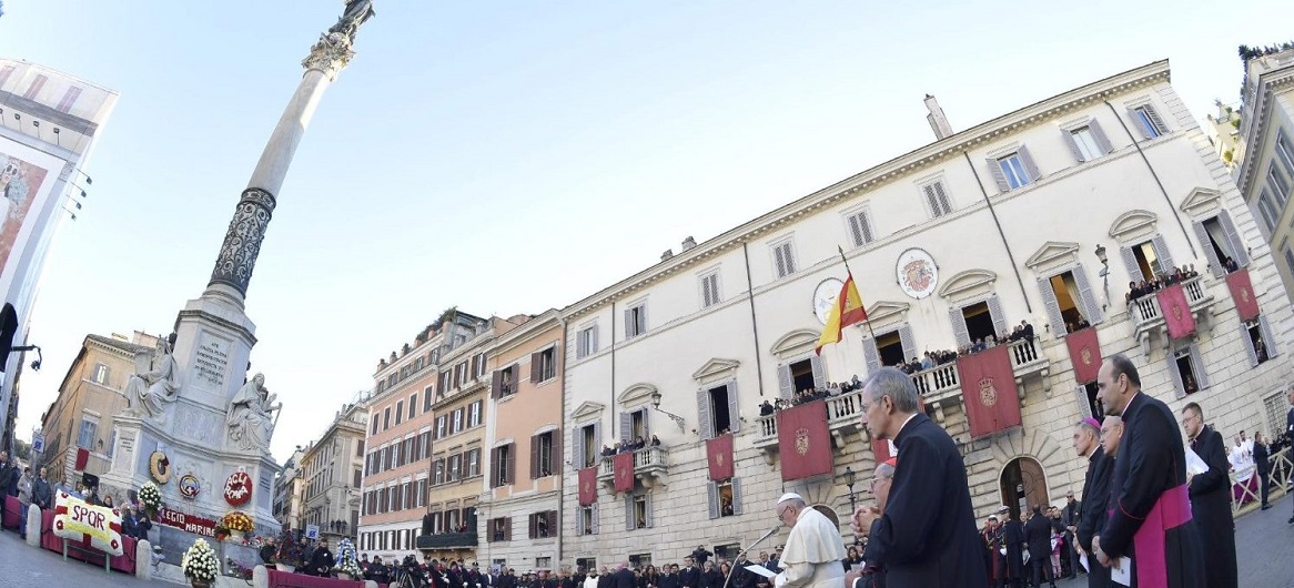 En la solemnidad de la Inmaculada Concepción -8 de diciembre-, el papa Francisco se ha desplazado después del almuerzo hasta la Basílica de Santa Maria Maggiore para rezar ante la imagen del ‘Salus Populi Romani’. Inmediatamente después, se ha dirigido a la plaza de España de Roma para el tradicional acto de veneración de la Inmaculada, a la que le ha dedicado una oración tras la ofrenda floral. “Madre inmaculada, en el día de tu fiesta, tan querida por el pueblo cristiano, vengo a rendirte homenaje en el corazón de Roma”, ha dicho.