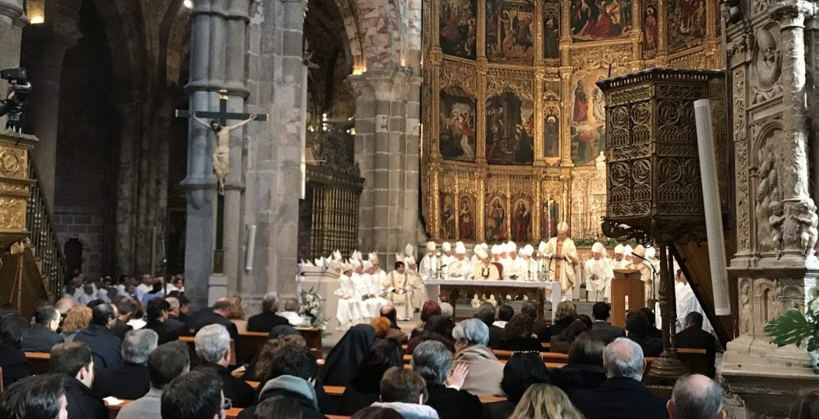 Junto a ellos, le acompañaban templo decenas de sacerdotes, religiosos -con la presidenta y el secretario general de Confer, al frente-, cientos de fieles y autoridades civiles, con el alcalde de Ávila, José Luis Rivas Herández, a la cabeza.