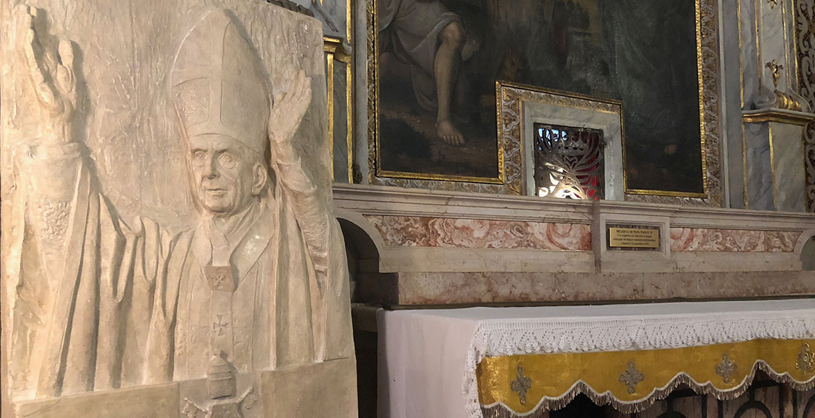 Hoy una estatua en el patio que une la iglesia mayor con el santuario en el que se encuentra la pintura de la Virgen recibe al visitante. Allí se venera una reliquia de la camisa que llevaba Pablo VI durante el atentado de Manila en 1970 –una segunda se puede ver en el Duomo de Milán– cuando fue acuchillado dos veces sobre el pecho.