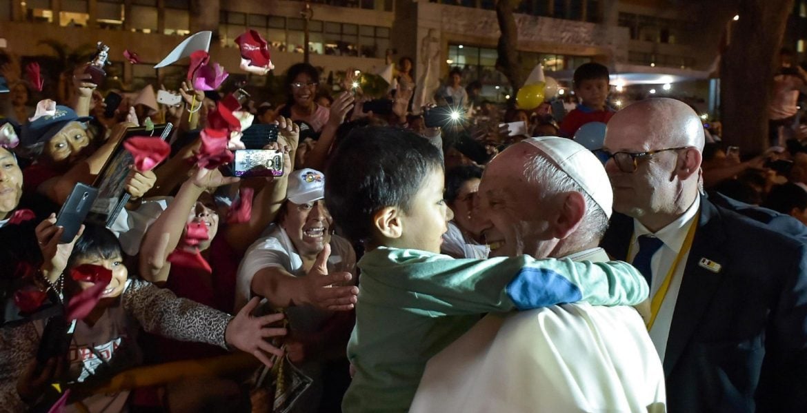 Un niño abraza al Papa Francisco en Lima, Perú/EFE
