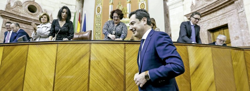 Moreno Bonilla, nacido en Barcelona en 1970, aunque arraigado en Alhaurín de la Torre (Málaga) –a donde volvieron sus padres tras emigrar a Cataluña–, tomó posesión hoy, 18 de enero, tras el apoyo en la investidura del partido de Albert Rivera y del de Santiago Abascal. Vox no estará en el Gobierno andaluz, aunque ha firmado un acuerdo con el PP de 37 puntos que Moreno Bonilla se compromete a desarrollar. Entre ellos, “apoyar material, humana y documentalmente a las Fuerzas y Cuerpos de Seguridad del Estado que tienen encomendada la protección de las fronteras, garantizando una inmigración ordenada, legal, respetuosa con nuestra cultura occidental, vinculada siempre al mercado laboral”.
