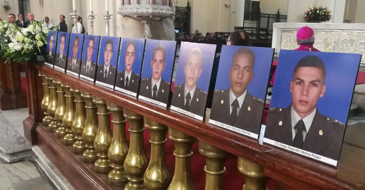 “Una sociedad estremecida por la barbarie que deja ver el monstruo de la muerte, es invitada a la interiorización porque no puede olvidar que el bien de todos es responsabilidad de todos y la seguridad de todos tiene que ser garantizada por todos”, dijo el obispo castrense ante los presentes, entre quienes se encontraba el presidente de la república, Iván Duque Márquez, la vicepresidenta, Marta Lucía Ramírez, el ministro de defensa, Guillermo Botero, los altos mandos de las Fuerzas Militares y de la Policía, así como los familiares de las víctimas.