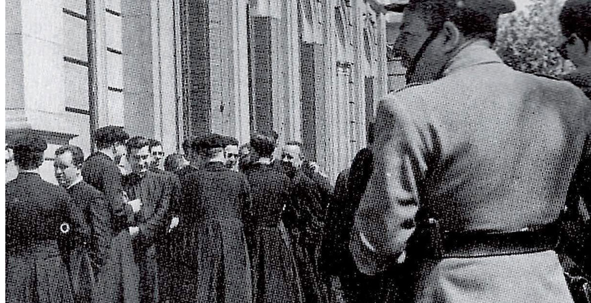 Un grupo de sacerdotes ante el juzgado de Guernica, en 1967, donde estaba siendo juzgado un compañero