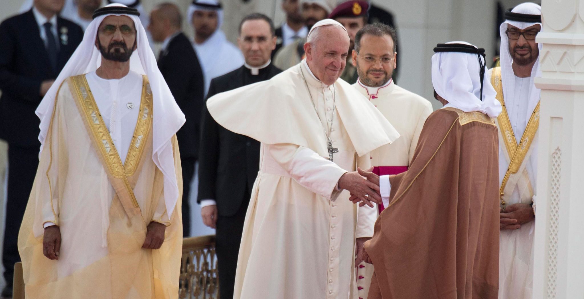 Los actos oficiales de la visita del papa Francisco a Emiratos Árabes Unidos echaron a andar en la mañana de este lunes, 4 de febrero, con el encuentro de unos veinte minutos de duración que el Pontífice y el príncipe heredero, el jeque Mohammed bin Zayed Al Nahyan, mantuvieron en el majestuoso Palacio Presidencial de Abu Dabi. La reunión fue de carácter privado y no se informó de los temas que trataron en esta primera estancia de un obispo de Roma en la península arábiga.