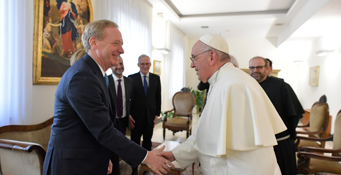 Francisco ha recibido a Brad Smith, el presidente del gigante informático Microsoft. Este abogado estadounidense de casi 60 años ha sido el representante legal de los intereses de la multinacional fundada hace 43 años en Nuevo México por Bill Gates y Paul Allen. La excusa que ha propiciado el encuentro ha sido la puesta en marcha de un nuevo premio sobre inteligencia artificial al servicio de la vida humana patrocinado por Microsoft.