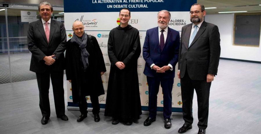 Convocados por la Fundación Valores y Sociedad, la Fundación Villacisneros y el CEU, el auditorio de la Mutua Madrileña, en plena Castellana, se llenó a rebosar en la tarde del 18 de febrero para asistir a lo que, más que a un debate de ideas, tenía los visos de querer ser la constatación de los peligros que acechan a España y los valores que tradicionalmente la han conformado, como son los emanados del cristianismo. Y el desarrollo del acto acabaría dándoles la razón.