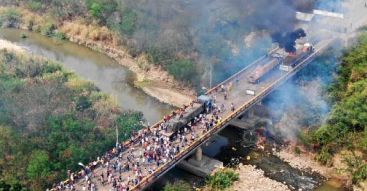 Mientras la situación política en Venezuela tiende a agravarse, la jornada del 23 de febrero convocada por el presidente interino, Juan Guiadó, para ingresar ayuda humanitaria por las fronteras terrestres y marítimas ha dejado un saldo de al menos 6 fallecidos, más de 300 heridos y la deserción de más 60 militares y policías venezolanos. Además, tres contenedores repletos de medicamentos y suplementos nutricionales para niños fueron incinerados en el puente de Tienditas, en Ureña, por efectivos militares venezolanos.