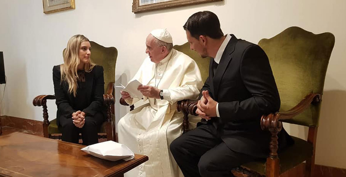 Sobre el encuentro con su tío, se ha limitado a colgar la foto con los tres y un sencillo agradecimiento: “Luna de miel y con el mejor regalo. La bendición de Francisco”.