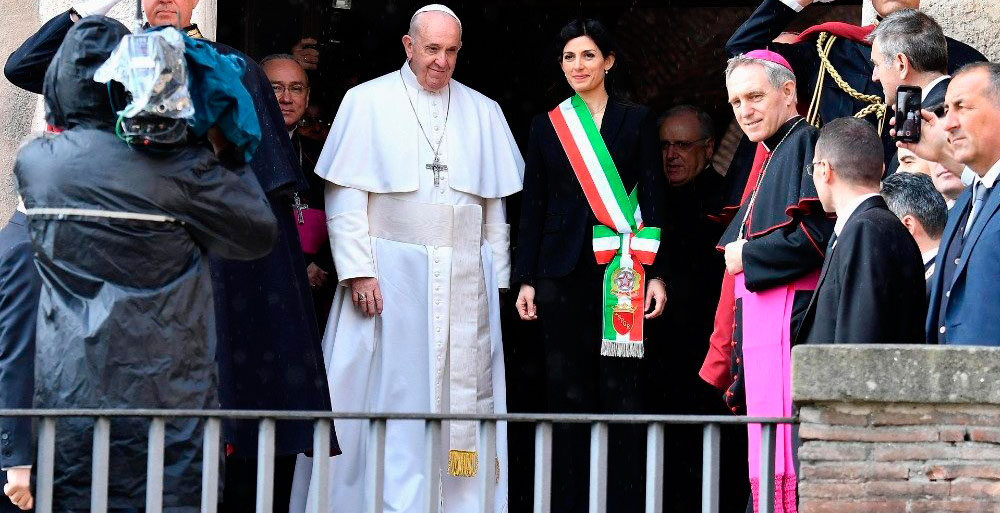 El papa Francisco visitó este martes, 26 de marzo, el Campidoglio, donde tiene su sede el Ayuntamiento de Roma. Después de mantener un encuentro privado con la alcaldesa, Virginia Raggi, del Movimiento 5 Estrellas (M5E), el Pontífice dedicó un discurso a los trabajadores municipales en el que presentó a esta ciudad con 2.800 años de historia como una “bisagra”.