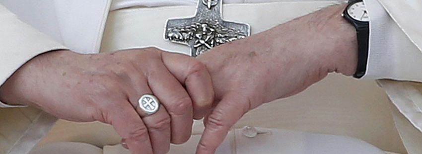 La ‘adoratio’ con su persona no es necesaria para el actual Sucesor de Pedro, quien porta un anillo que ni siquiera es el del pescador, ya que habitualmente lleva aquel de cuando era cardenal arzobispo de Buenos Aires.