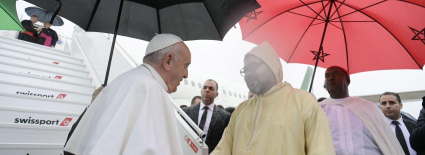 La visita del papa Francisco a Marruecos, centrada en Rabat, ya ha comenzado. El avión que le conducía desde el aeropuerto romano de Fiumicino le ha dejado, bajo una fuerte lluvia, a las 14:01 horas (a las 13:01 en el horario local) de este sábado 30 de marzo en la capital marroquí. Bergoglio, en el que es su 28º viaje internacional, permanecerá en la nación magrebí menos de 48 horas, hasta mañana, domingo 31.